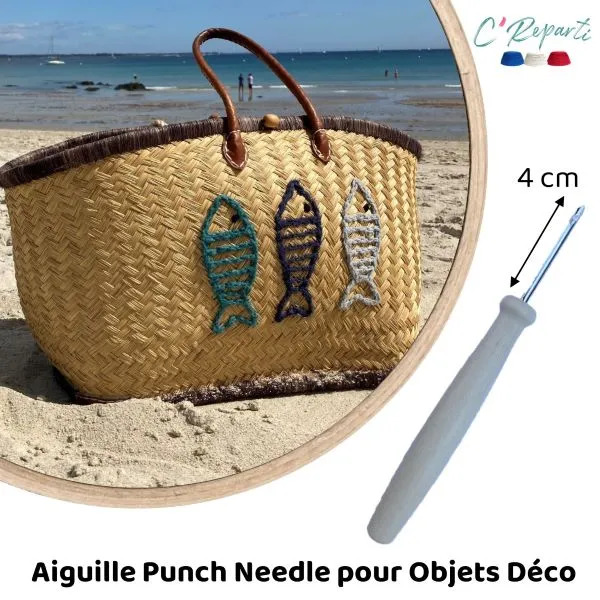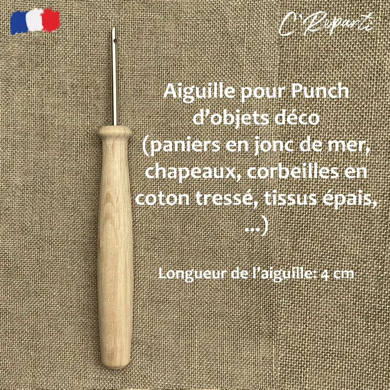 Voici la « grande soeur » de notre aiguille standard: l’aiguille pour puncher des objets déco, comme des paniers, des corbeilles, des chapeaux, des tissus épais…