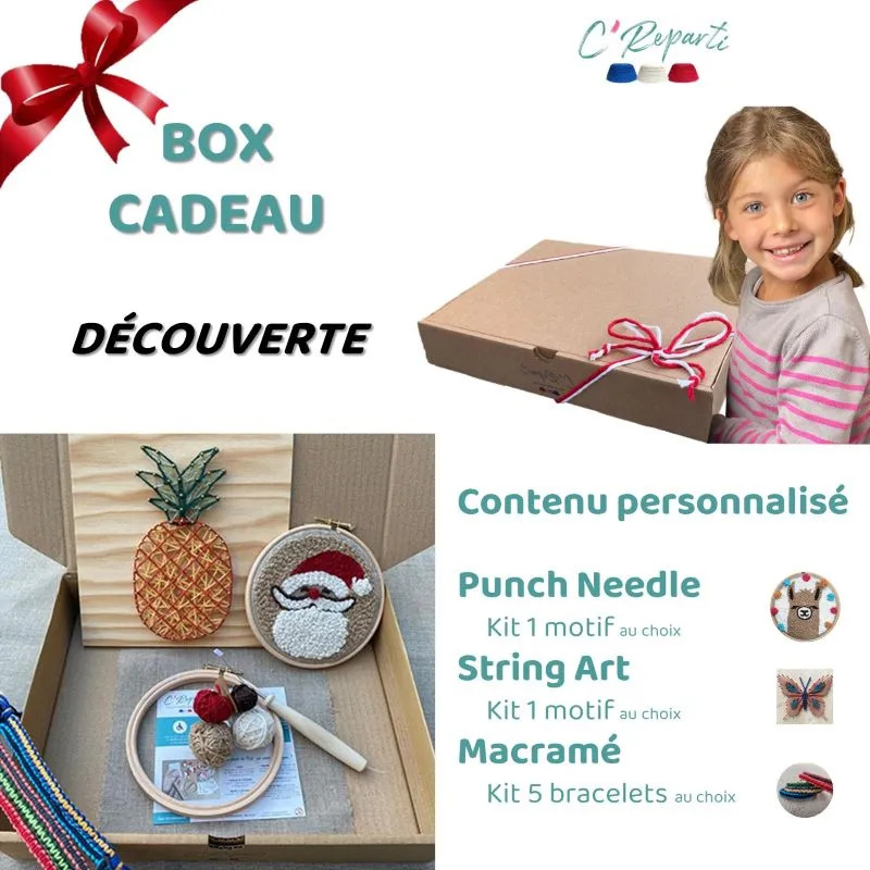 Pour faire le plein d’activités créatives , (re) découvrir ces différentes techniques, gâter un fan d’activités manuelles, se constituer une petite réserve d’activités ludiques pour occuper les temps calmes … voici notre Box cadeau à personnaliser !