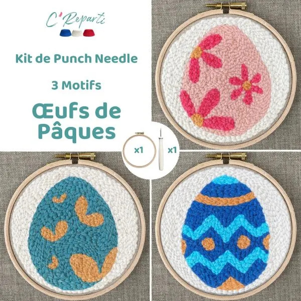 Kit Punch Needle 3 Motifs Oeufs de Pâques