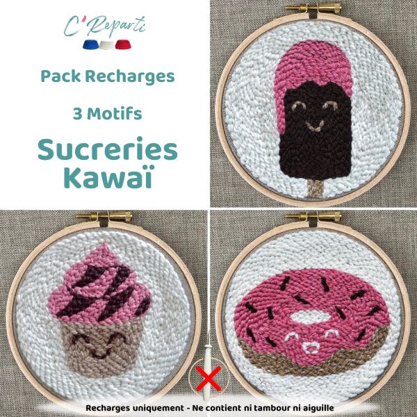 Ce pack de 3 recharges pour Kit de Punch Needle C’Reparti contient: